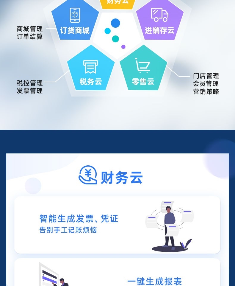 業(yè)財(cái)稅深度融合,智能核算,解放財(cái)務(wù)生產(chǎn)力,提升企業(yè)記賬效率;以票控稅,合理籌劃稅務(wù)申報(bào),幫助小微企業(yè)提升財(cái)務(wù)管理水平;