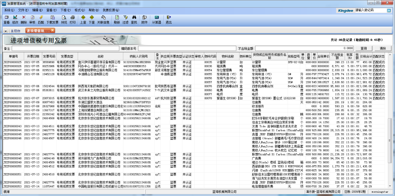 這些信息錄入系統時,差之毫厘謬以千里,要確保下載的發票準確無誤,需先維護好供應商納稅人識別號,并對發票所涉及的物料名稱、規格型號、計量單位等字段信息一一對應。