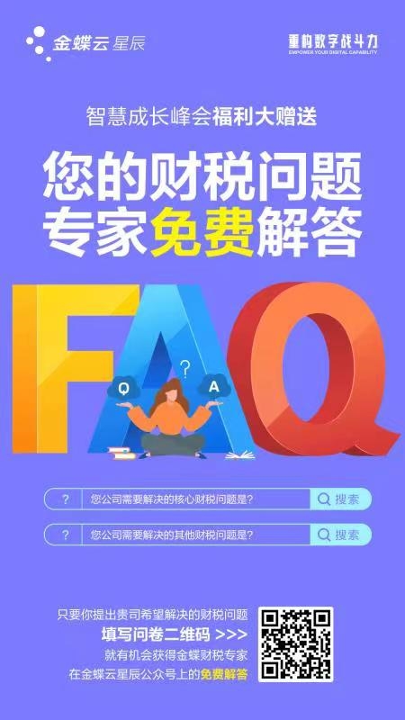 掃描填寫您企業(yè)急需解決的財稅問題,即有機(jī)會在【金蝶云星辰】公眾號獲得資深專家深度解答!