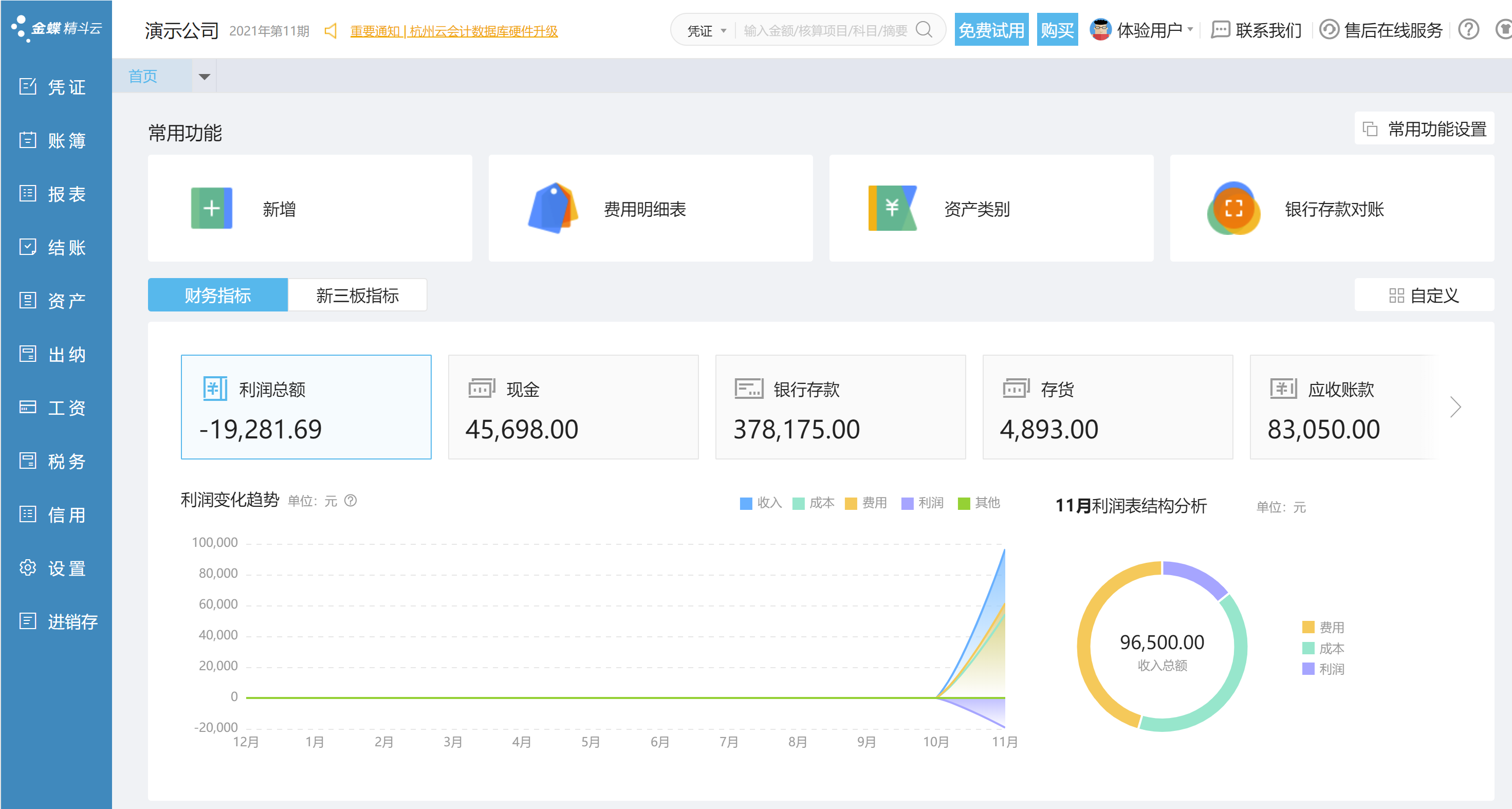 在我國比較有名的財務軟件中,洛陽金蝶軟件精斗云,云會計軟件系統(tǒng)在這些軟件里符合中國人的傳統(tǒng)財務記錄方式,能夠完好的貼合財務企業(yè)管理人員的使用習慣,并且能夠提供每周十二小時的人工客戶服務,并且在用戶初次使用期間,有著一個月的免費試用期限,如果不滿意還能夠?qū)θ斯た头岢龈倪M要求。金蝶精斗云采用云服務,企業(yè)財務管理人員即使在家也能登錄管理企業(yè)財務,進行智能記賬,一鍵報銷等,秉持用戶至上理念服務了超過一百萬家中小微企業(yè)。但是金蝶精斗云只有一個月的免費使用期限,在一個月時間結(jié)束后則需要購買相關(guān)功能。