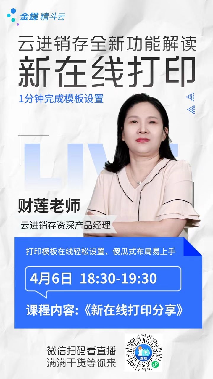 洛陽金蝶軟件#2023.4.6#精斗云直播課#云進(jìn)銷存#全新在線打印