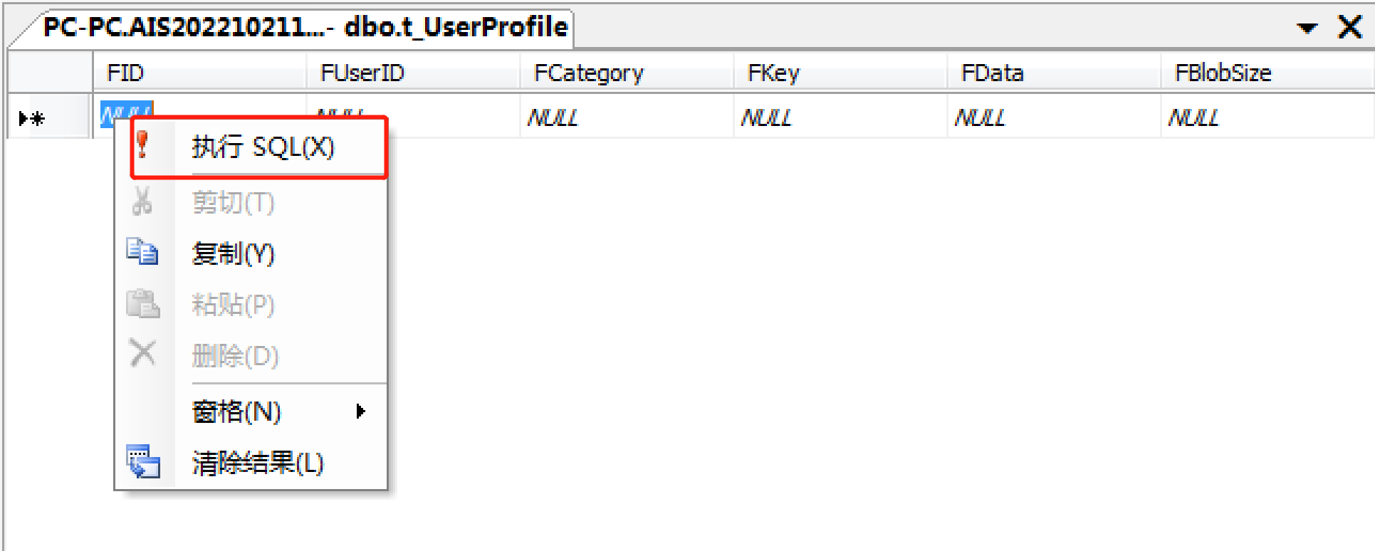 3、清除所有行記錄后,鼠標“右鍵”——執行SQL 即可。
