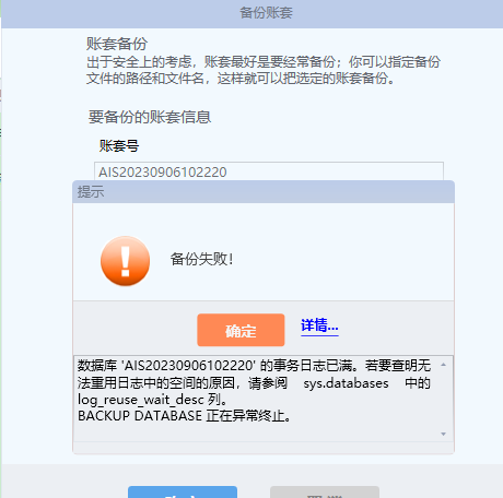 金蝶KIS專業版、KIS商貿版 賬套數據超大且備份失敗,處理方法
