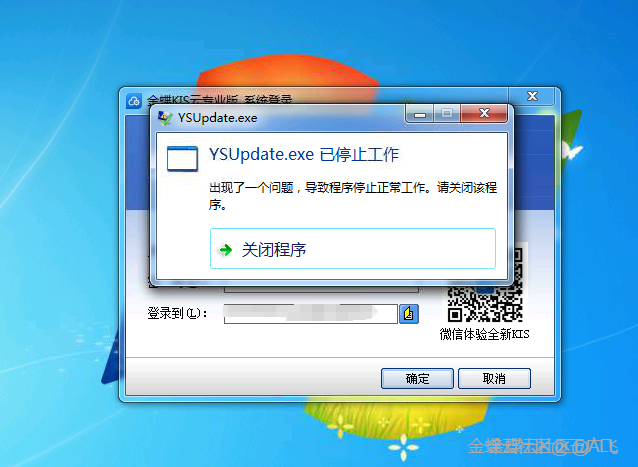問題描述:金蝶KIS專業版 V15.0 v15.1等部分版本,登錄就提示YSUpdate.exe已停止工作,解決方案記錄。