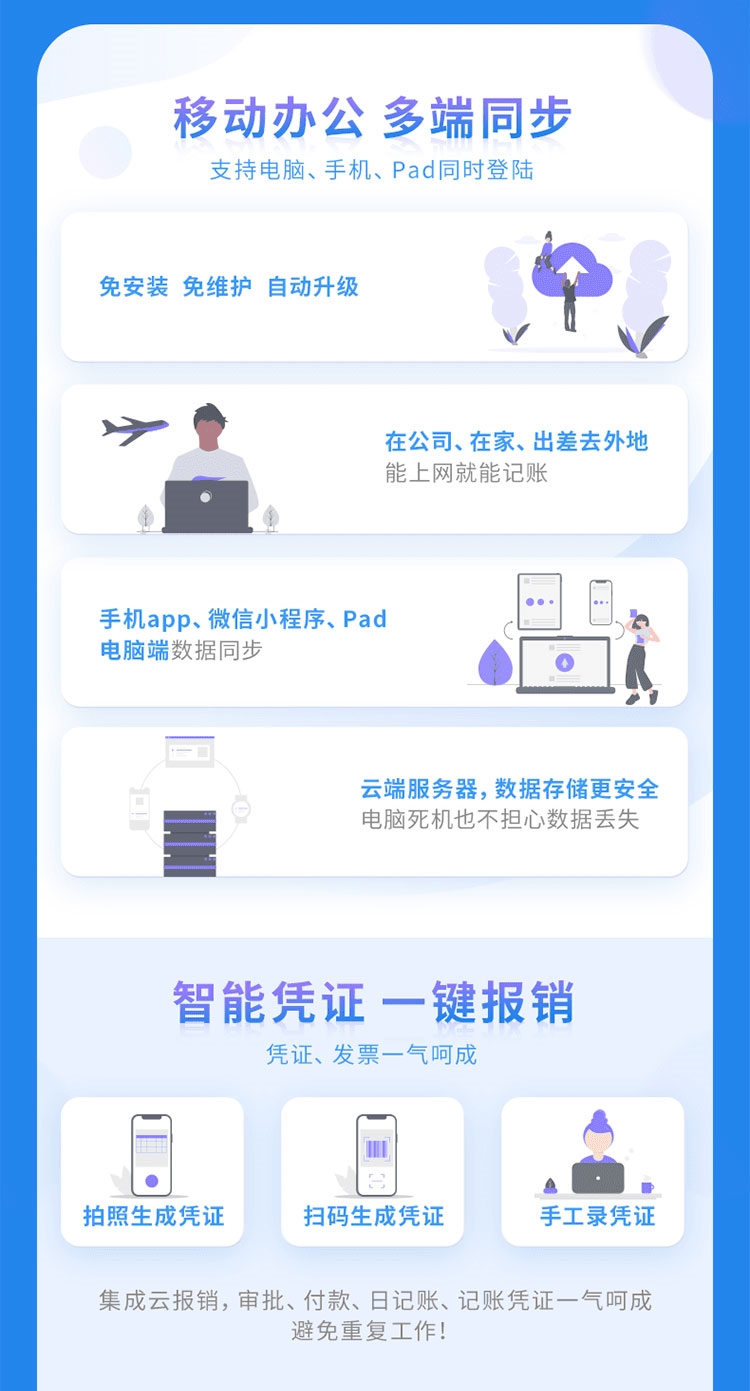 服務優勢:免安裝、免維護,隨時隨地在線使用,滿足企業財務及業務數據的查詢、分析及決策需求。