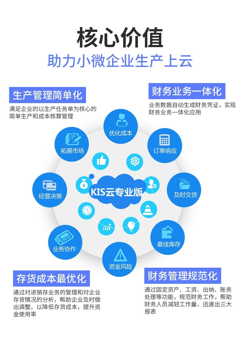 中小微企業 財務+倉庫進銷存+生產、委外管理、應收應付一體化管理軟件系統,使用簡單、便捷,選金蝶云“金蝶KIS云專業版”。